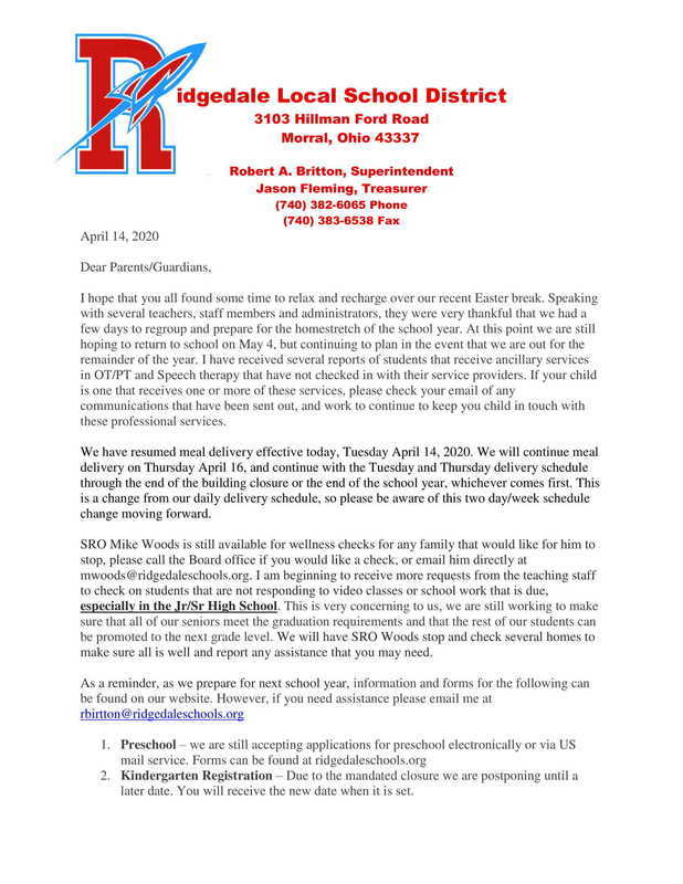 Family Letter 4-14-2020
