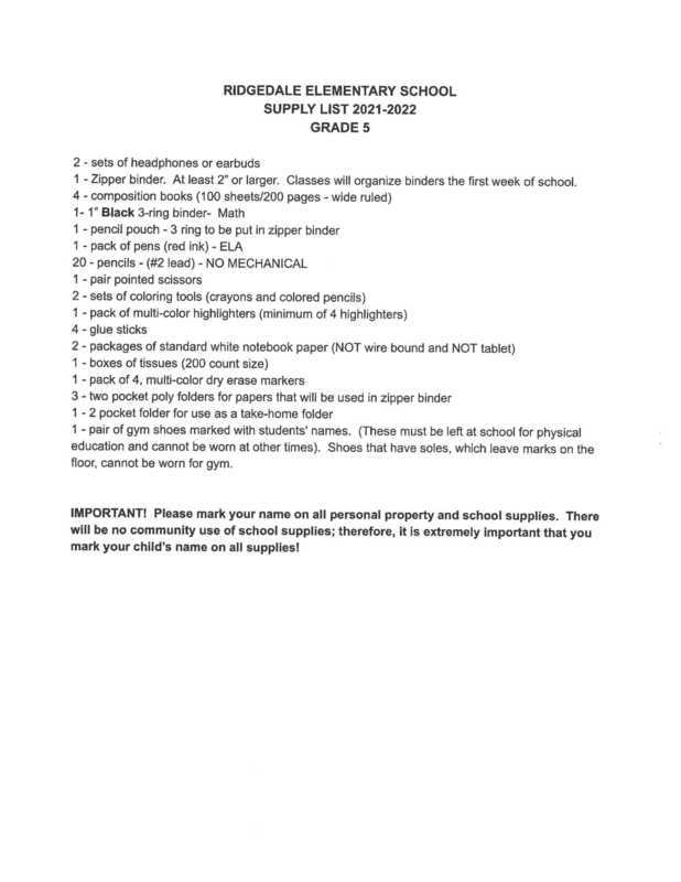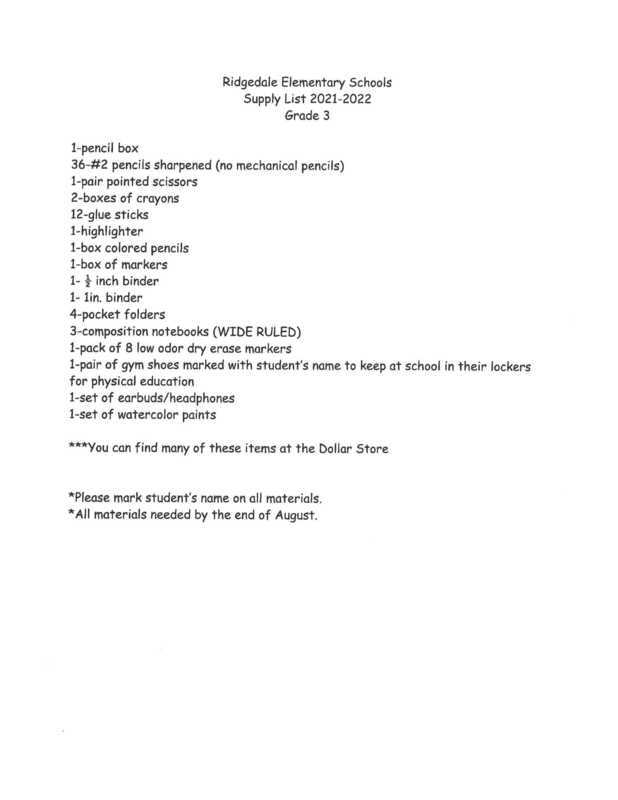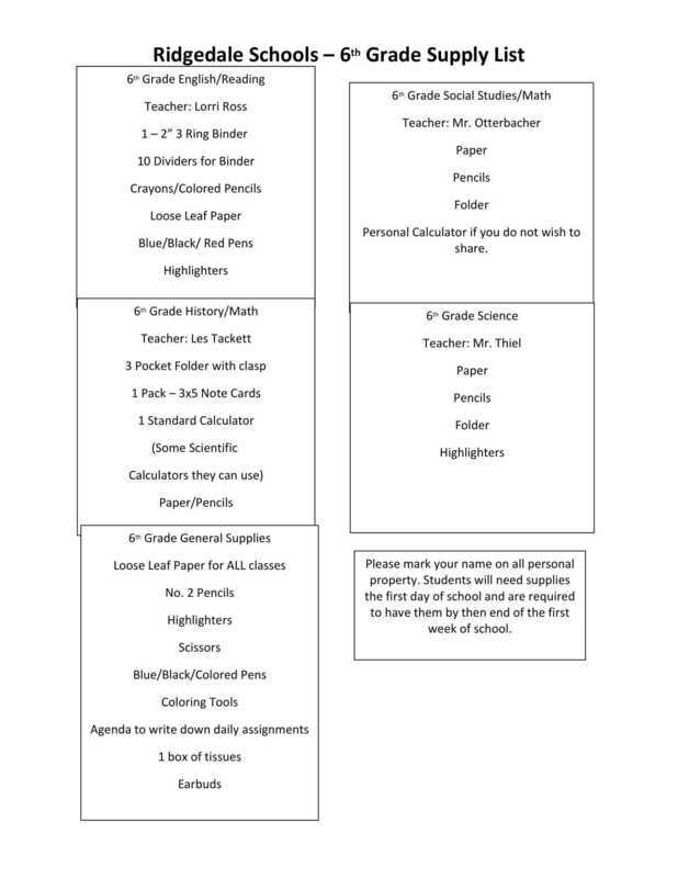 School Supply Lists