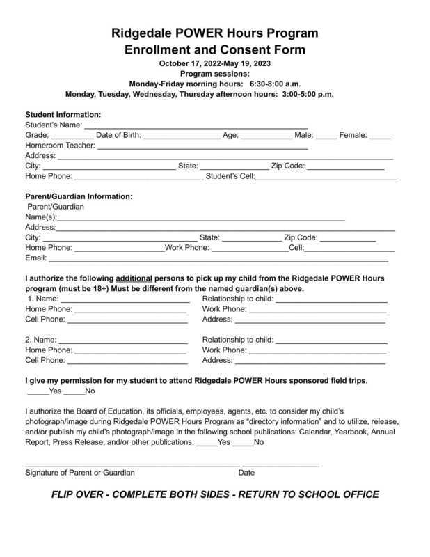 Ridgedale Power Hour Enrollment Form